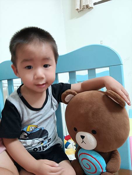 👶:姊不見了,怎麼辦?👩🏻:誰叫你都欺負他👶假哭👩🏻:沒有啦,姊姊上學啦👶秒恢復坐在椅子的手把上,把他的阿熊放上去阿熊差一點掉下去👶:阿熊,沒事吧👩🏻心裡想都沒這麼關心我🙄