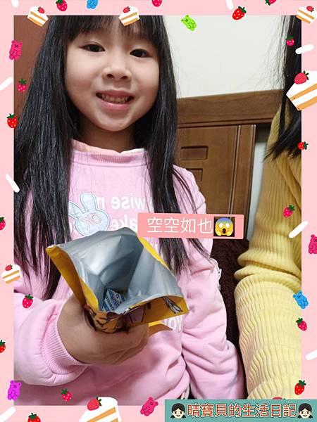 脆脆的蒜頭餅乾搭配椒香麻辣,真的是很享受,這個是我的最愛,由於兩個孩子都怕辣,所以這一包就沒人跟我搶了,後來因為處理被搞得狼籍一片的現場,想說隔天再繼續吃,沒想到隔天被我家老吃貨(晴爸)吃光了,整個殘念。