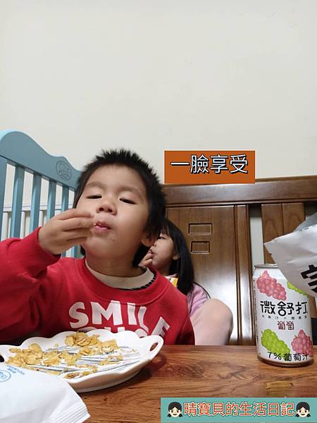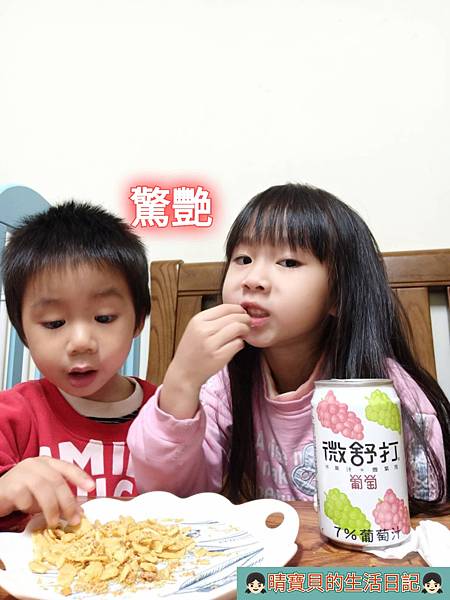 當發現家裡有餅乾出沒,我家兩個小吃貨當然不會放過這個好機會,吵著也要吃,想著兩個不敢碰白胡椒和椒香麻辣,於是就給了他們清檸梅香口味的雞皮。