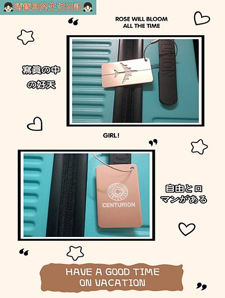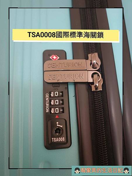 現在要來推薦的這一款旅行箱就是CENTURION百夫長行李箱(含白色防塵套),它有三種尺寸,分別為20吋、27吋、29吋,會來推薦這一咖旅行箱就是因為它的蒂芬尼藍是我最喜歡的藍色,箱體本身也非常有質感,最重要的是它非常符合我的需求。另外,行李箱的把手、拉鏈、內部空間及海關鎖處都有著『CENTURION』的字樣,它還有一年的保固。