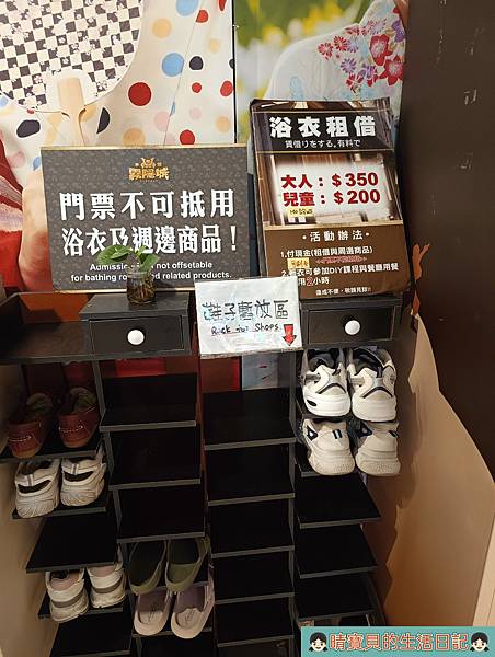 我們到的時候先是去了租借浴衣處等待排隊租借浴衣,期間我們逛了一旁的配備區,若喜歡也可以因應需求購買。