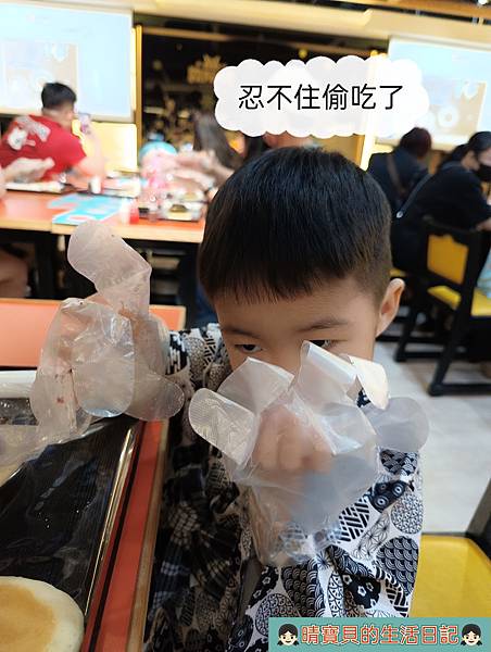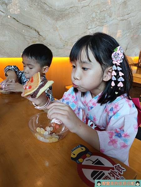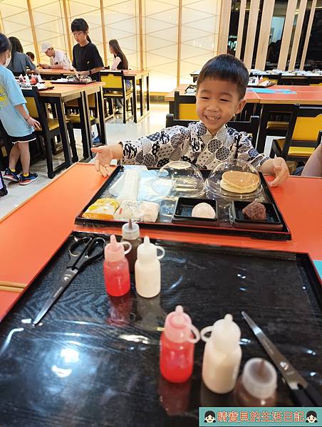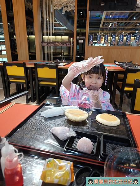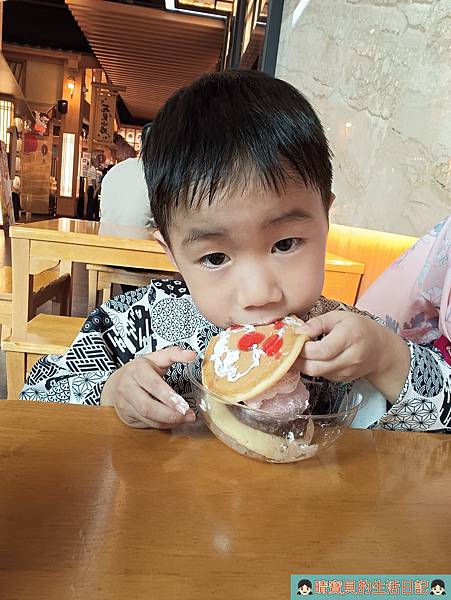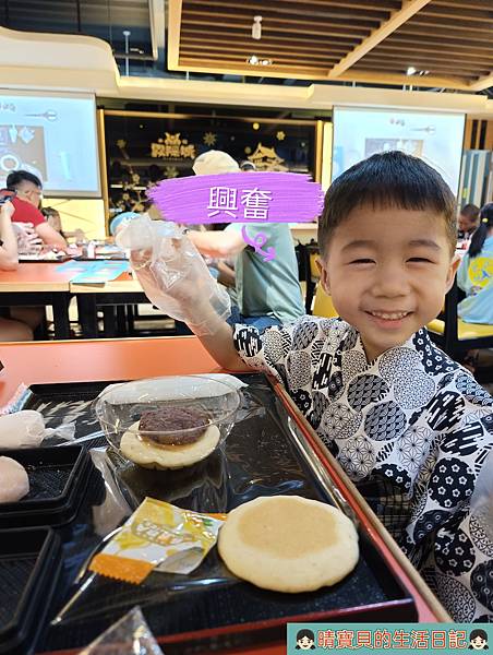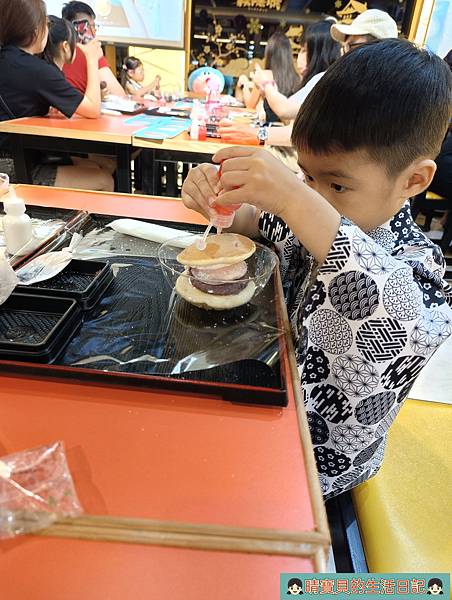 著裝後,我們就先前往DIY手作銅鑼燒區排隊等待,上次因為沒排到所以一直惦記著這件事,不過剛好這次有時間來也剛好,程程可以一同參與,一切就是那麼的剛剛好,當然要來好好體驗一下,畢竟不同年齡體驗的感受一定會不一樣。