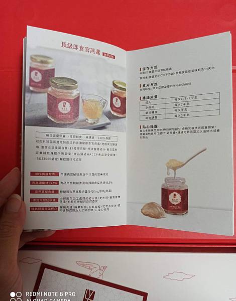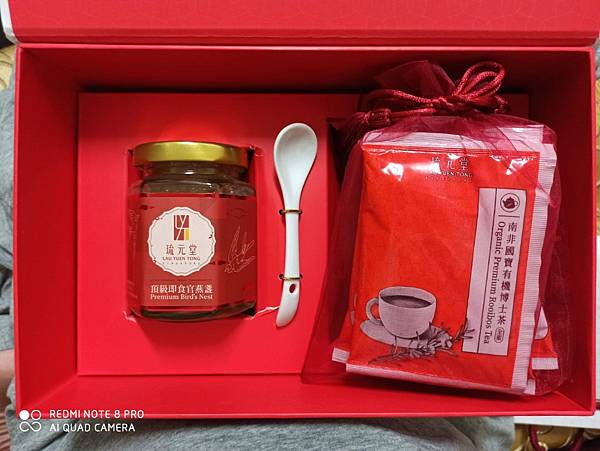 打開盒子,首先看到的是琉元堂的介紹,讓食用的人對該產品有更多的認識,裡面有一罐罐裝的即食燕窩,還附上可愛的陶瓷湯匙以及用袋子裝著的南非國寶茶八入,裡面還有一本介紹,有各種不同產品及食用教學,非常的貼心!
