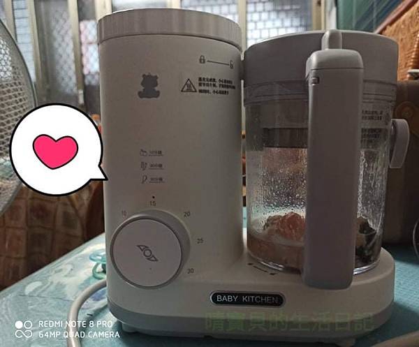 待他吃完副食品後,我也吃完晚餐後(約一小時多左右),我就開始了清洗食物調理機,至於為什麼放那麼久才進行清洗,當然主要是測試食物調理機若沾到肉類放一段時間後會不會不好清洗,因為平常清洗的時候最怕的時候最怕食物黏在器具上很難清理,還要用菜瓜布刷半天,這樣很花費時間😵,兩個寶貝也會不肯,所以關於清理這一塊我非常的重視是否好清洗。