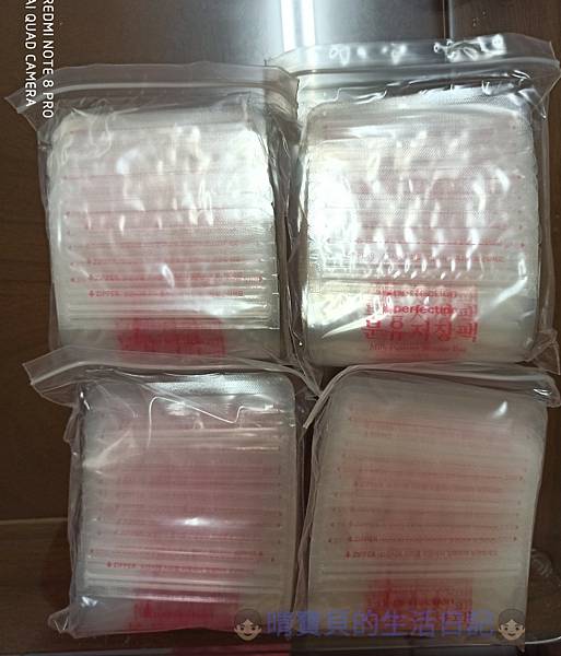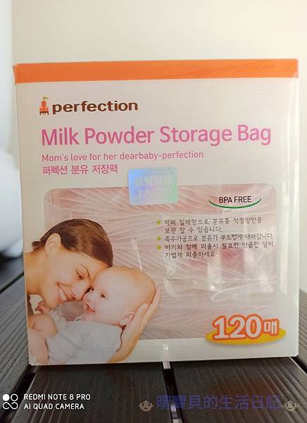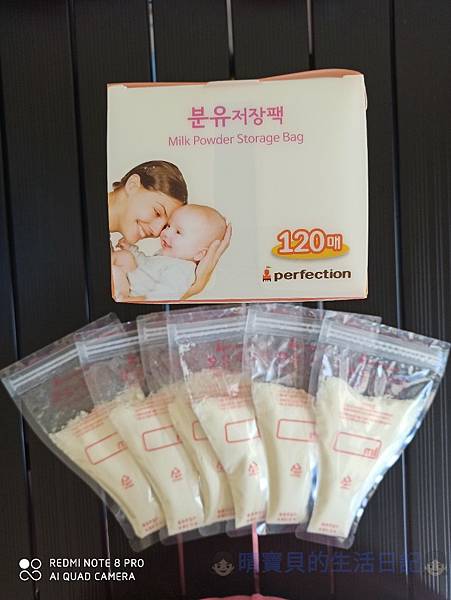 我使用的奶粉袋是韓國perfection奶粉袋,它一盒裡面有120枚,分成4小包,每一包都用一個小密封袋裝起來,非常方便。