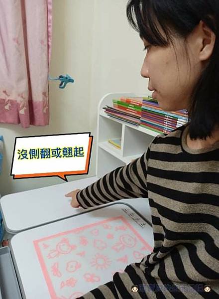 對晴媽來說L桌不但沒有坐歪的問題,而且還非常方便的是不但可以在旁邊放孩子的水壺、讀完的書本、寫完的作業本等甚至爸媽們還可以坐在一旁陪讀,非常的方便。
