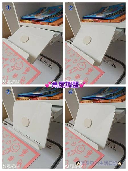 上面的書架也非常的不賴,它可做四段角度調整,隨個人習慣去調整,平時沒有使用時,可以將它收納起來,也是挺方便的一環。