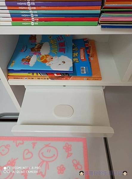介紹完桌體本身,來講講他們的BOX90收納閱讀兩用書櫃架,雖然晴晴才三歲,但晴媽還是選擇這一款書櫃架,希望養成晴晴隨手整理書本的好習慣(當然目前晴媽也會協助整理),另外它還有簍空的電線走線孔設計,方便電線收納,讓電線可以更加整齊擺放。