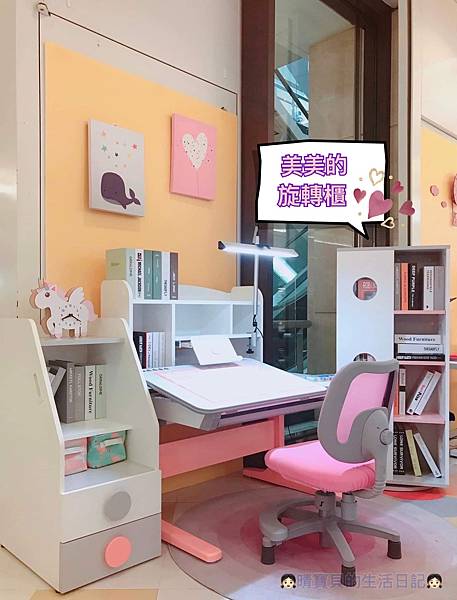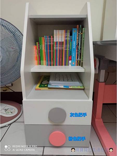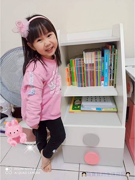 因為有了成長桌椅,當然不能缺少書櫃啊!挑選書櫃對我來說無疑是非常難抉擇的事,因為每一款都有我喜歡的點,但是最後我還是選擇了雙層抽屜矮櫃,晴晴書雖然多,但目前頂多幾十本,現在買來放晴晴的書的話旋轉櫃好像太奢侈了些,且我還要顧慮到程程這年紀正是愛探索時期,最擔心的是程程爬去拿姊姊的書來撕(最近非常愛撕書😩),所以只能暫時不考慮,不然說真的旋轉櫃真的超吸引我的,連晴媽我自己都超愛的說,只是我沒有書可以放😂。