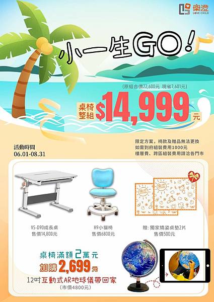 指定桌椅組合DIY只要14999元,再加贈獨家矯姿桌墊x2片