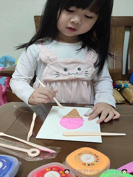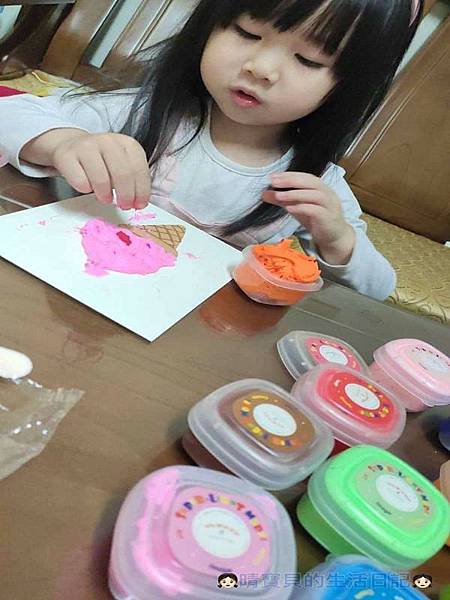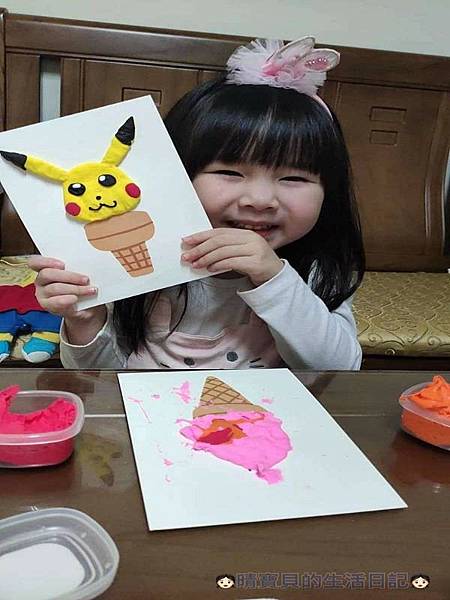晴爸是採用完全放任式讓孩子自己發揮想像力去創作,爸爸說晴晴說要爸爸一同做皮卡丘、琪琪冰淇淋和完全自己做的東西…雖然晴晴心中的冰淇淋很特別,但不得不說童心星球的黏土真的超棒的!