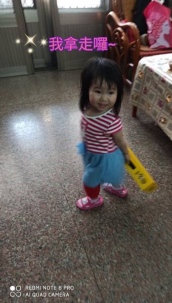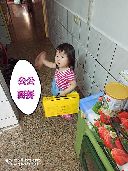 (▲看到外公發現了,趕緊拎走跟外公說再見)