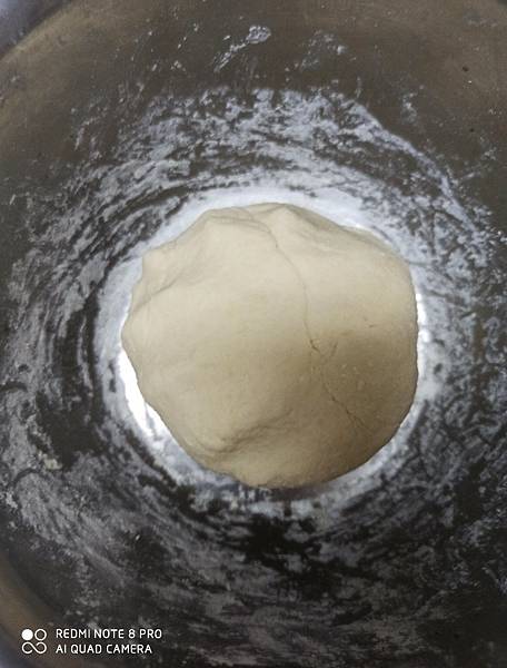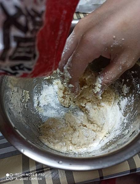 1、先將豆渣、低筋麵粉和鹽揉至不黏手